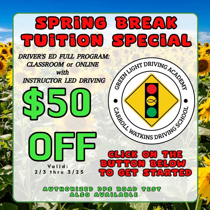 Green Light Driving Academy, owned & operated by Tom & Jamie Pennington, is excited to announce, we have acquired Carroll Watkins Driving School in Keller.