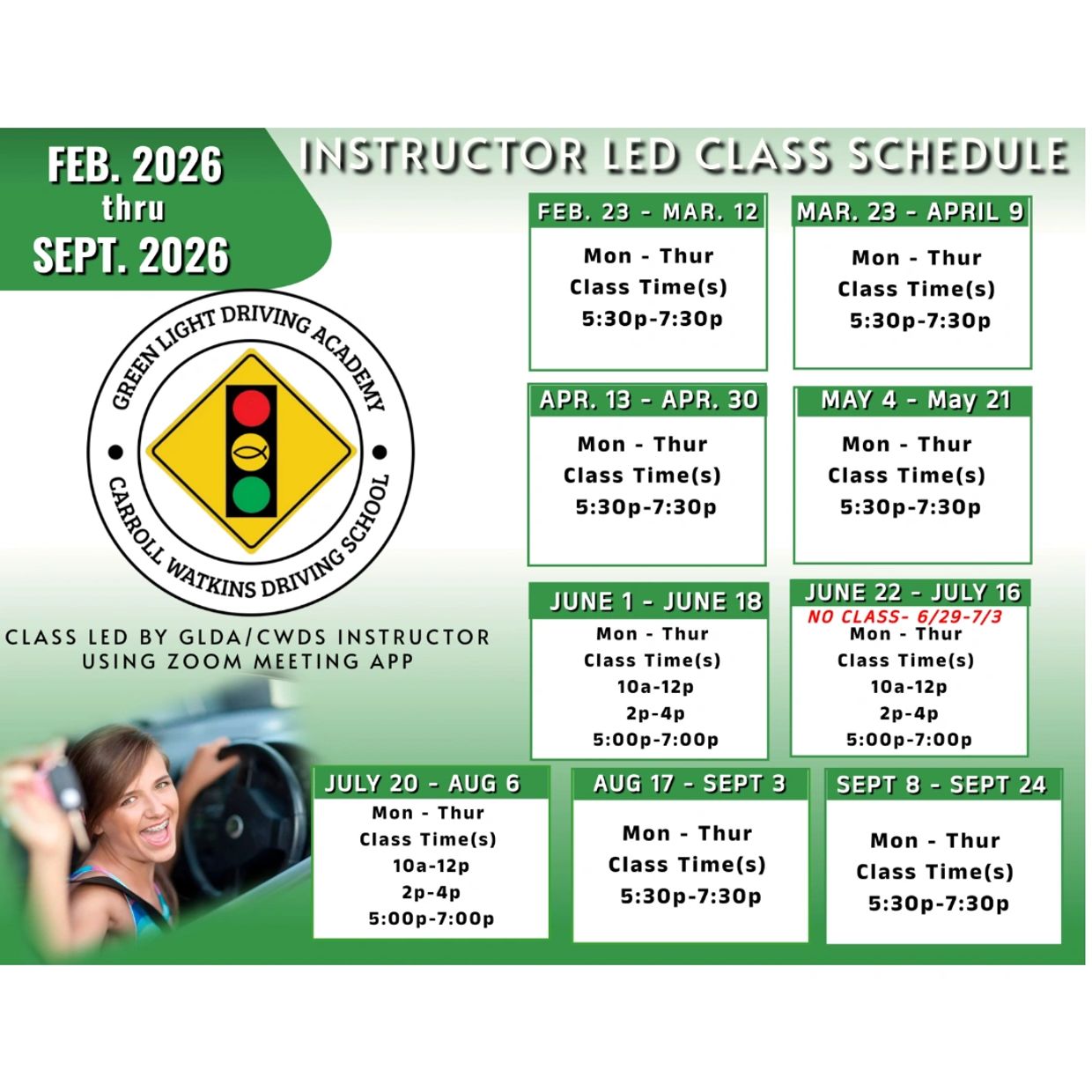 Carroll Watkins Driving School c0250 & Green Light Driving Academy c1728, c1728a
