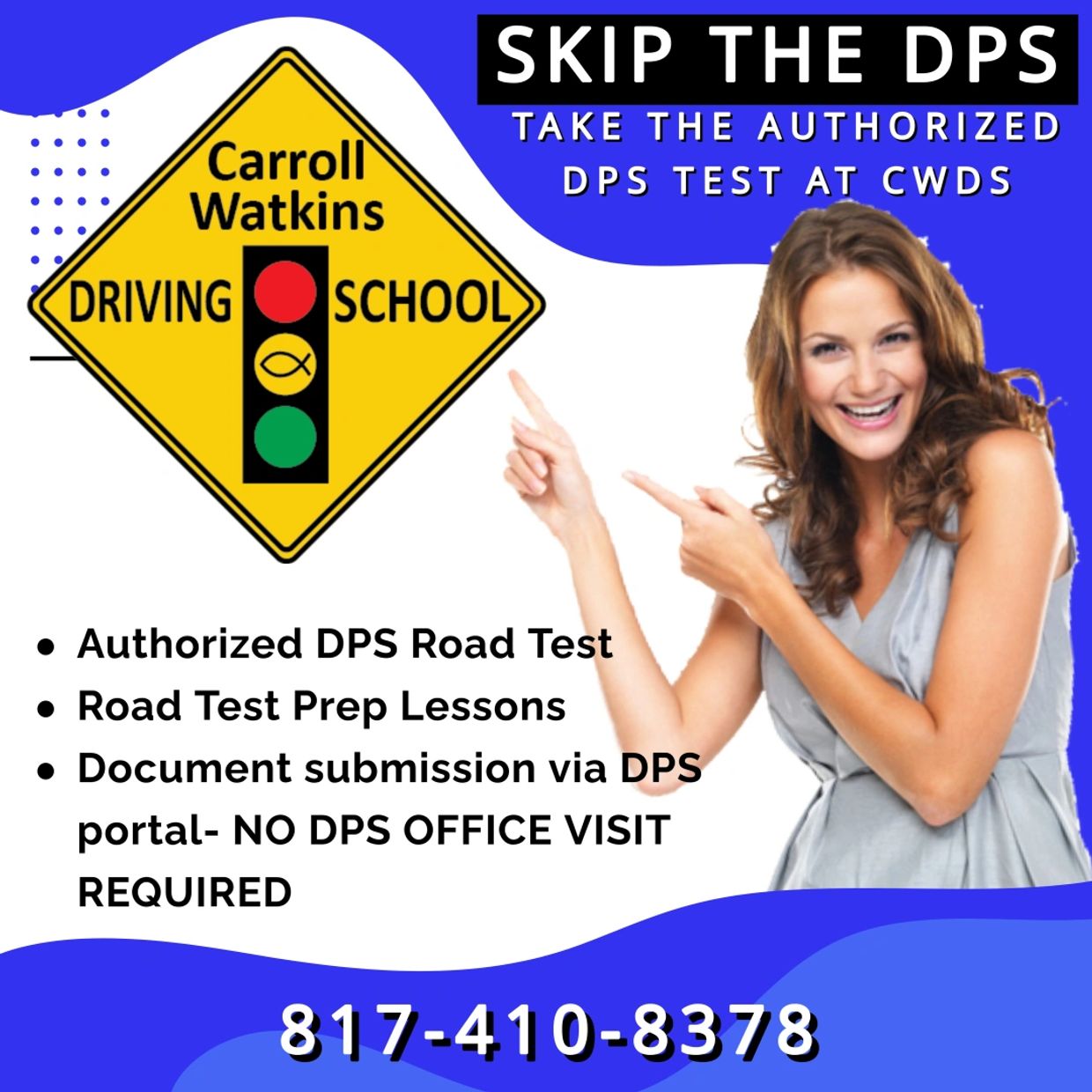 Register for Test Prep Lesson,or the Authorized DPS Road Test. Don't forget to ask about allowing us to submit the required documents, allowing you to SKIP THE DPS COMPLETELY!